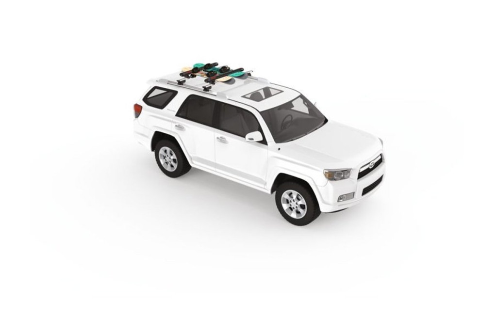 A tartó egyszerre akár 6 pár síléc vagy 4 snowboard szállítására alkalmas. A T-profilba illeszkedő adapterek nem részei a csomagnak, és a tartó az egyetlen megoldás, ha az autóján nincs T-profil.